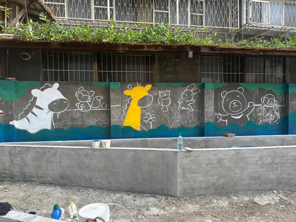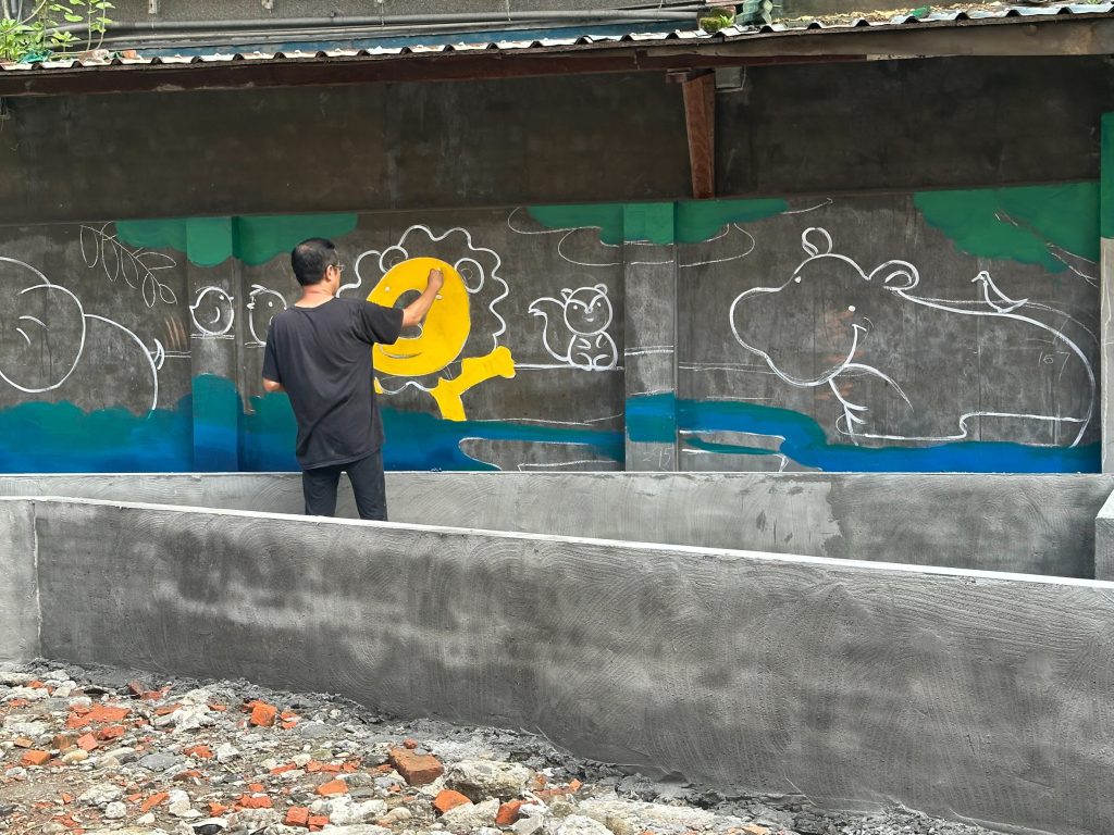 「閒置空間彩繪設計工作坊」特別邀請具有公共藝術經驗的藝術工作者擔任引導者,帶領居民從最初的場域踏查出發,觀察環境特質、蒐集地方故事,並透過討論與互動,共同發想彩繪主題。這個過程不僅是藝術創作的前置作業,更是社區共識凝聚的重要歷程。許多參與者分享了自己與這片土地的連結──有人提到童年在此玩耍的回憶,有人描述過去台糖產業帶來的繁榮,也有人希望透過彩繪表達對社區未來的期盼。這些真實的故事與情感,最終都化為牆面上的圖像語言,使作品成為集體記憶的延伸。