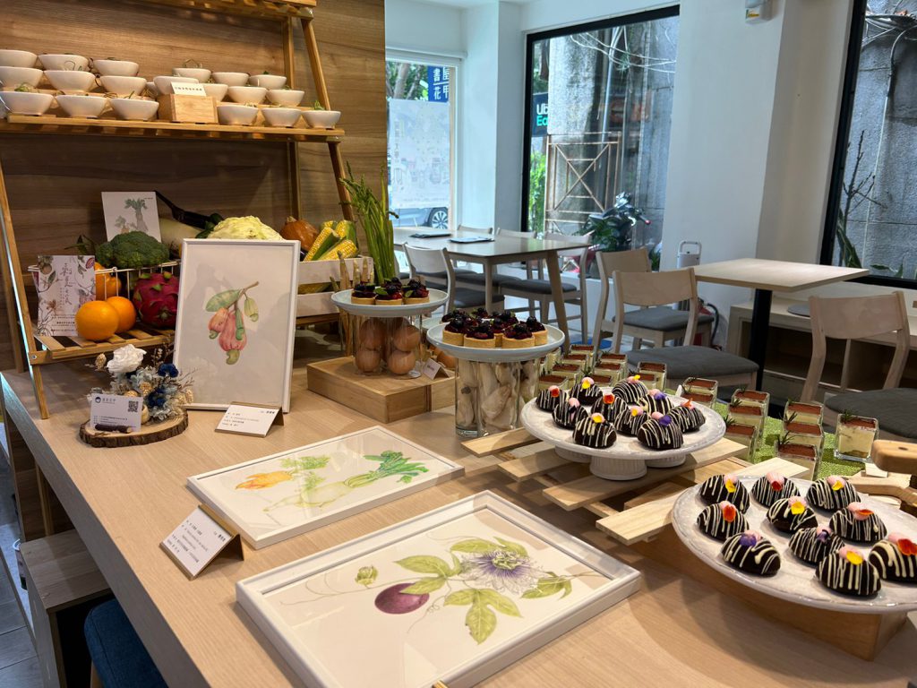 中正社大此次與長期關注續食議題的書屋花甲X而立書店攜手合作,串連多個課程班級,共同打造兼具藝術性與教育性的展覽內容。展覽不僅呈現學員的創作成果,更透過互動與品味體驗,讓民眾在感官與思考間產生共鳴。店長方億傑與甜點師林子涵共同策劃的「飲品與甜點的相遇」課程,帶領學員從認識食材到製作甜點飲品的過程,探索食物的風味變化與文化脈絡,傳遞「不浪費即創造」的理念。而余佳諭老師指導的「用色鉛筆畫出市場的菜」與「色鉛筆繪植物」兩班,則以繪畫為媒介,讓學員透過細緻觀察市場蔬果與植物姿態,一筆一畫描繪自然的真實樣貌,延伸對生命與土地的體察。